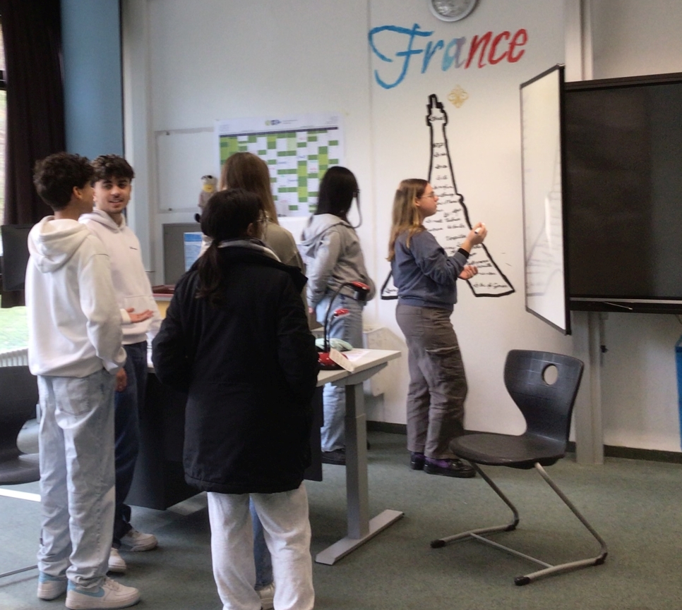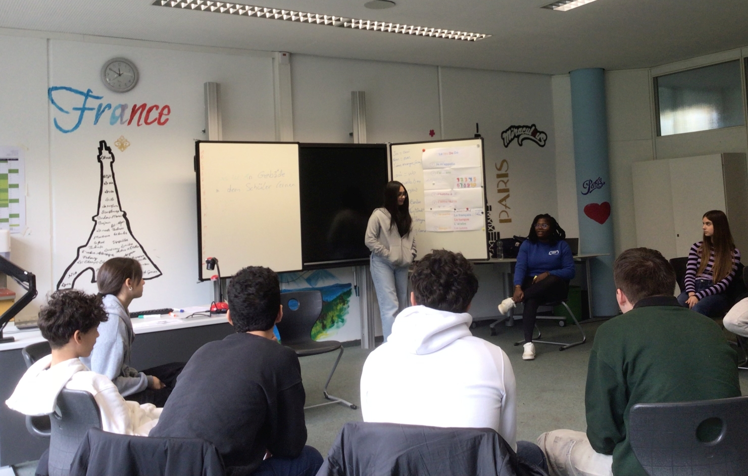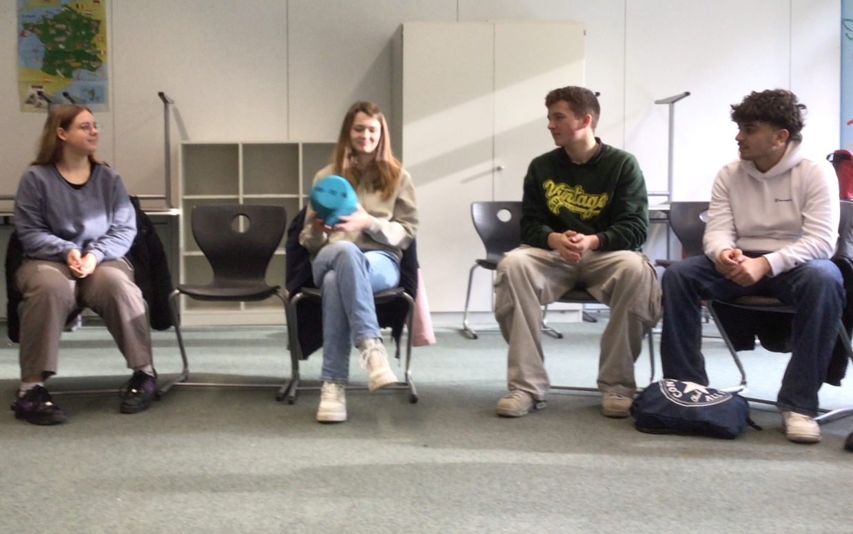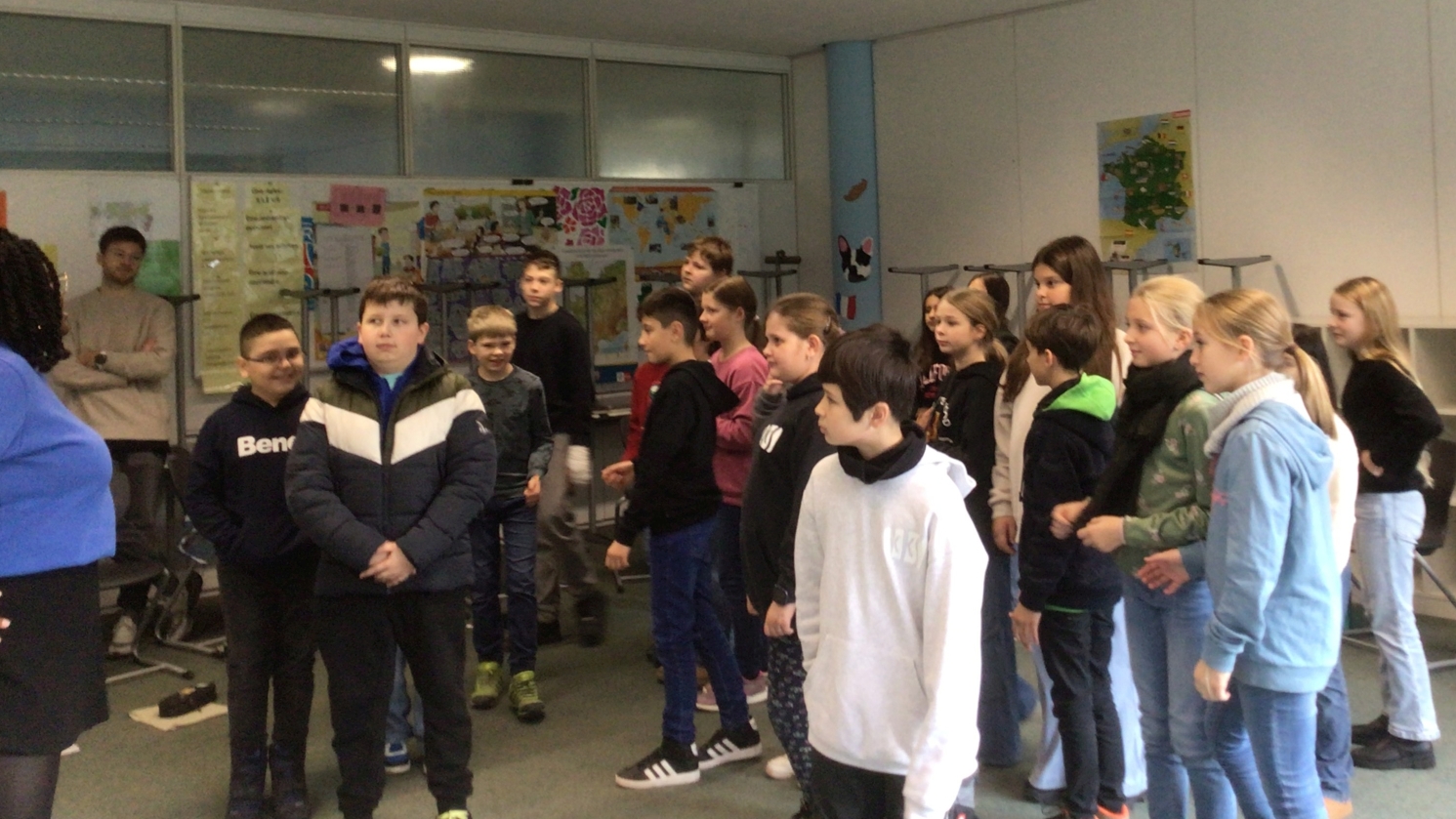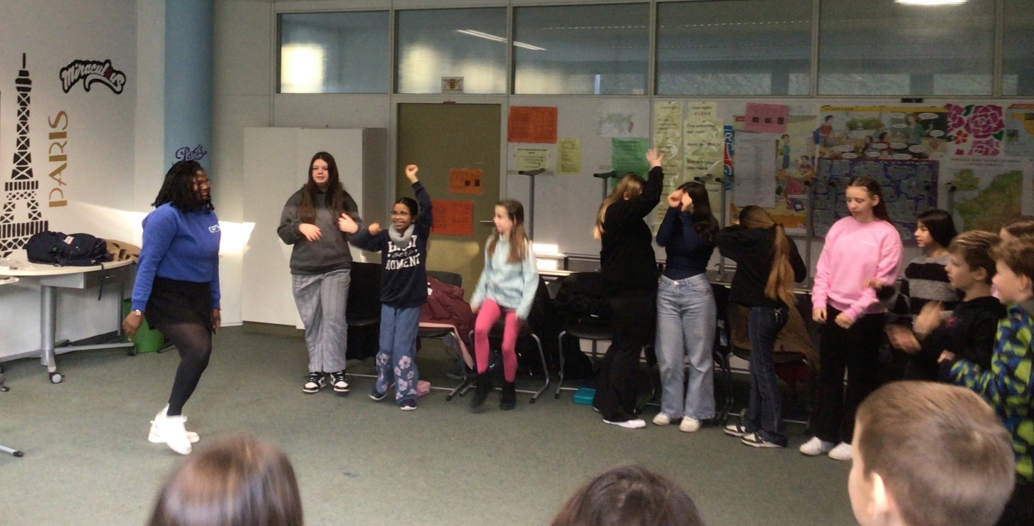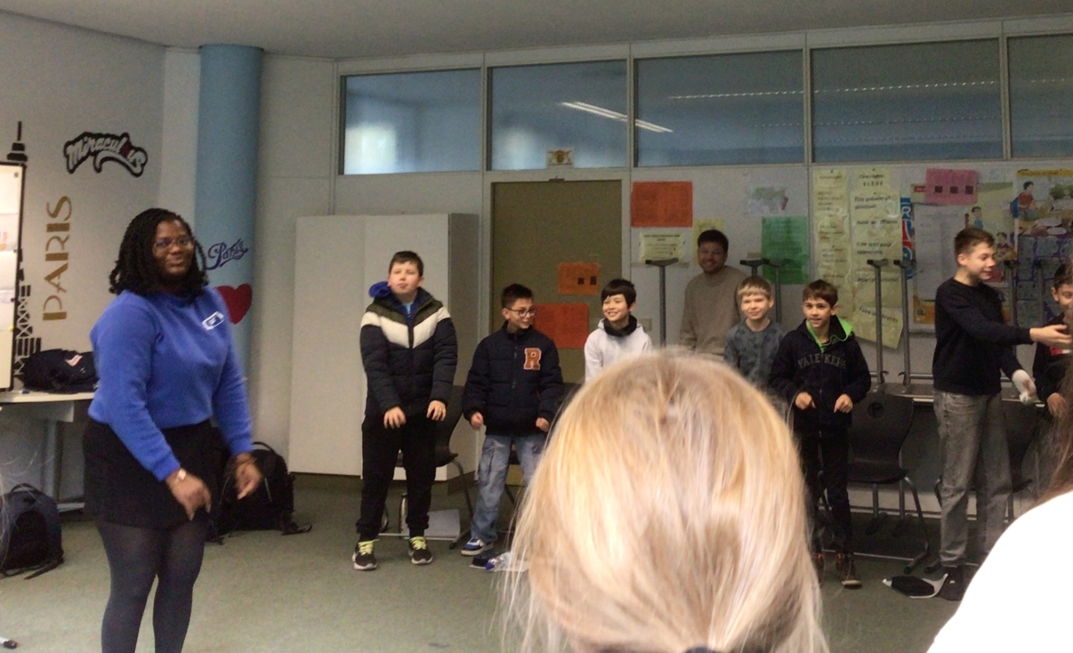 Am Dienstag, den 26. November 2024 haben die Französischschüler der Karl-Kessler-Schule in Aalen-Wasseralfingen Besuch von FranceMobil bekommen. Hermence Béhanzin, die Lektorin von FranceMobil, hat mit ihrer lockeren, aber verbindlichen Art geschafft, die Schüler für die Schönheit der französischen Sprache zu begeistern und mit den Schülern einige Wortfelder zu erarbeiten. Die jüngeren Schüler haben gelernt, sich auf Französisch vorzustellen, sie wissen jetzt wie man die Richtungen auf Französisch sagt und sich in Frankreich begrüßt und verabschiedet. Kleine Tanzpausen zu moderner französischer Musik zwischendurch waren das Highlight. Voller Begeisterung über das gemeinsame Hobby Fußball, das die Schüler mit Hermence teilen, haben sie mit der Lektorin ihre Kontakte ausgetauscht. Die älteren Schüler haben mit Hilfe von Kärtchen Vokabeln erklärt, mit der Referentin, die ursprünglich aus einer königlichen Familie aus Benin, einer ehemaligen französischen Kolonie herkommt, über den afrikanischen Kontinent diskutiert und darüber wie viel oder wie wenig Wasser Menschen auf dem afrikanischen Kontinent heute zur Verfügung haben. Zum Schluss hat Hermence ihre Heimat mit dem Palast ihrer Familie und ihrem Bauernhof den Schülern vorgestellt, was die Schüler sehr beeindruckt hat. Wir wissen den Besuch von Hermence Béhanzin sehr zu schätzen und wünschen ihr für ihre Zukunft alles Gute.