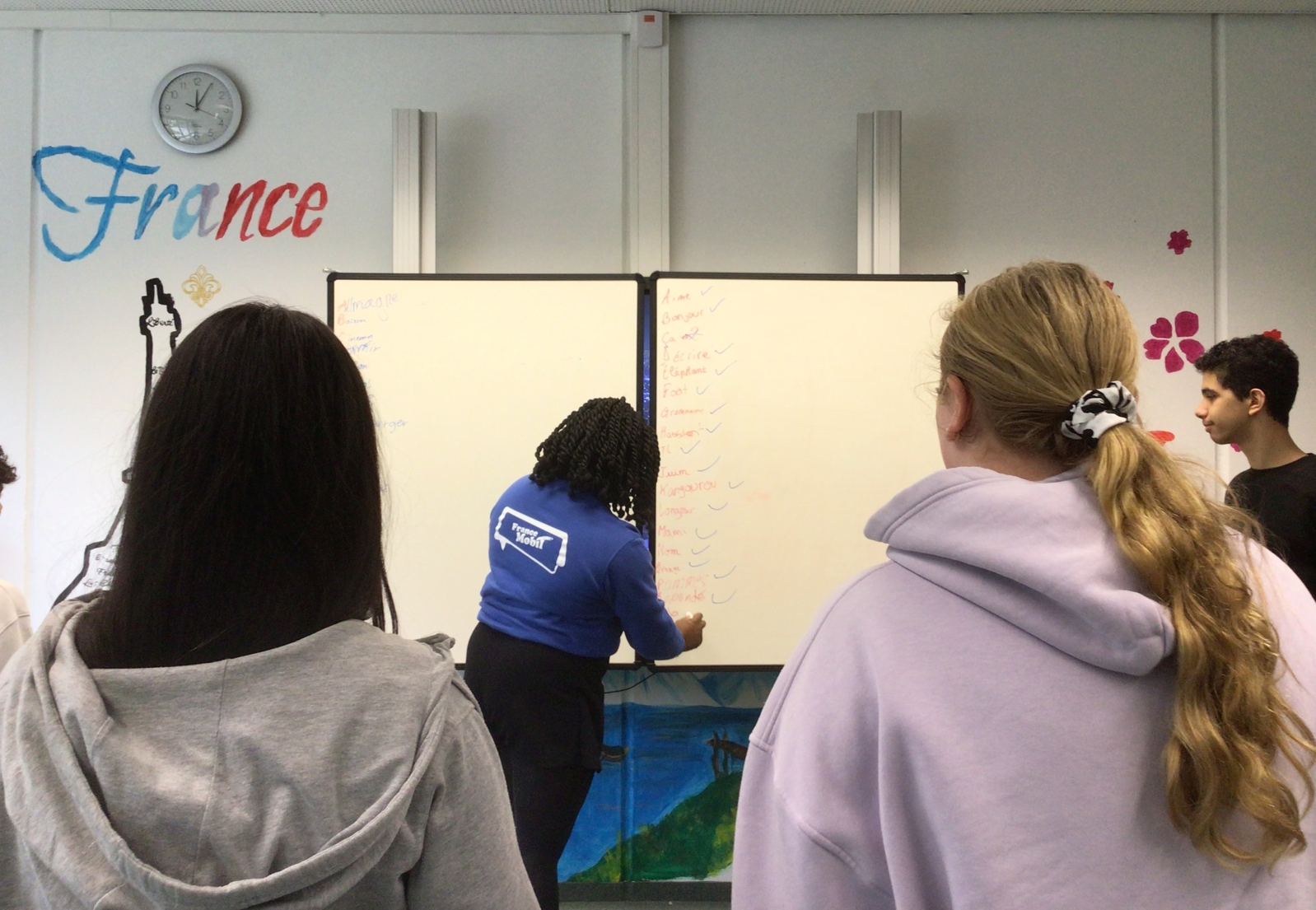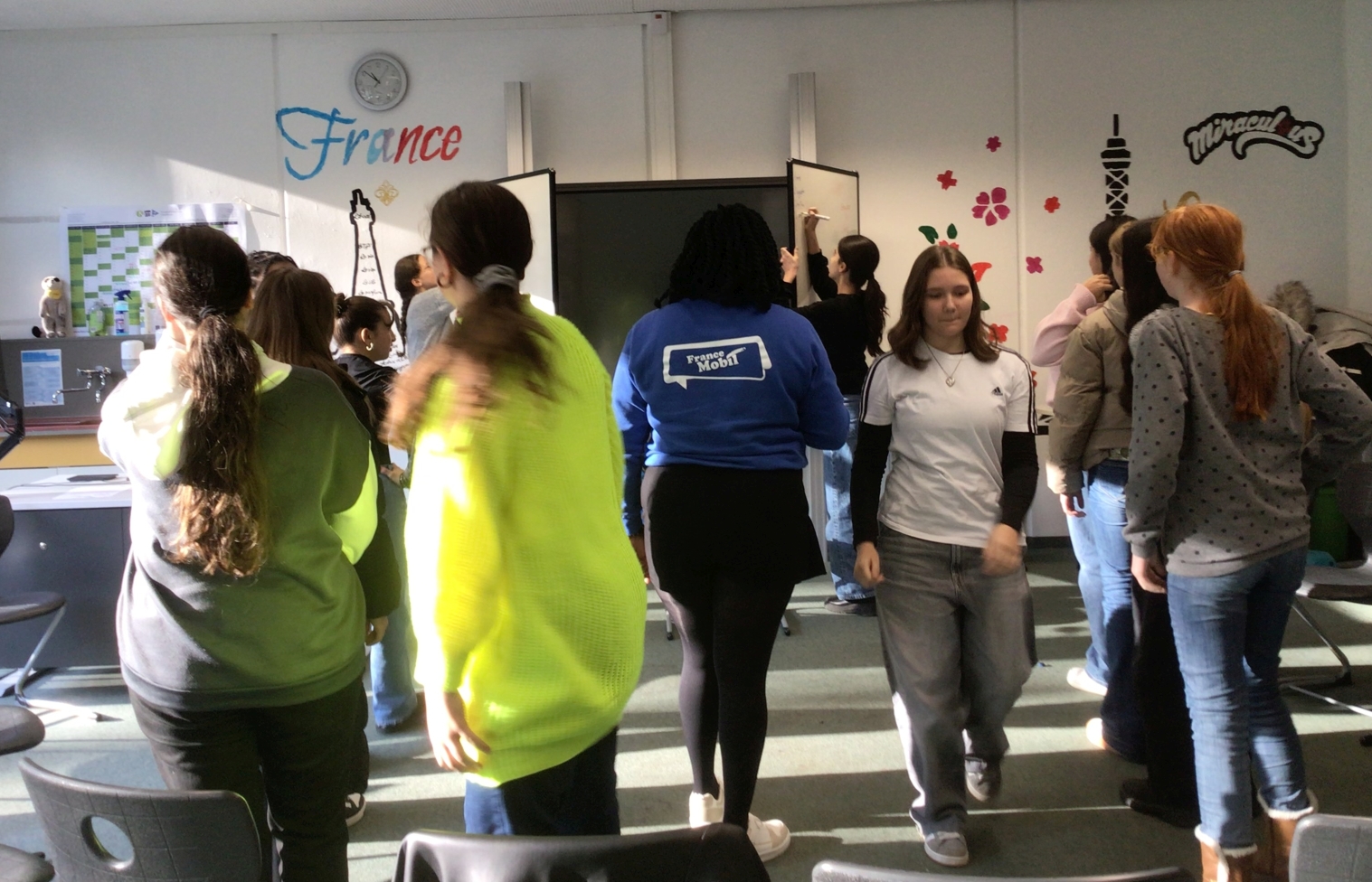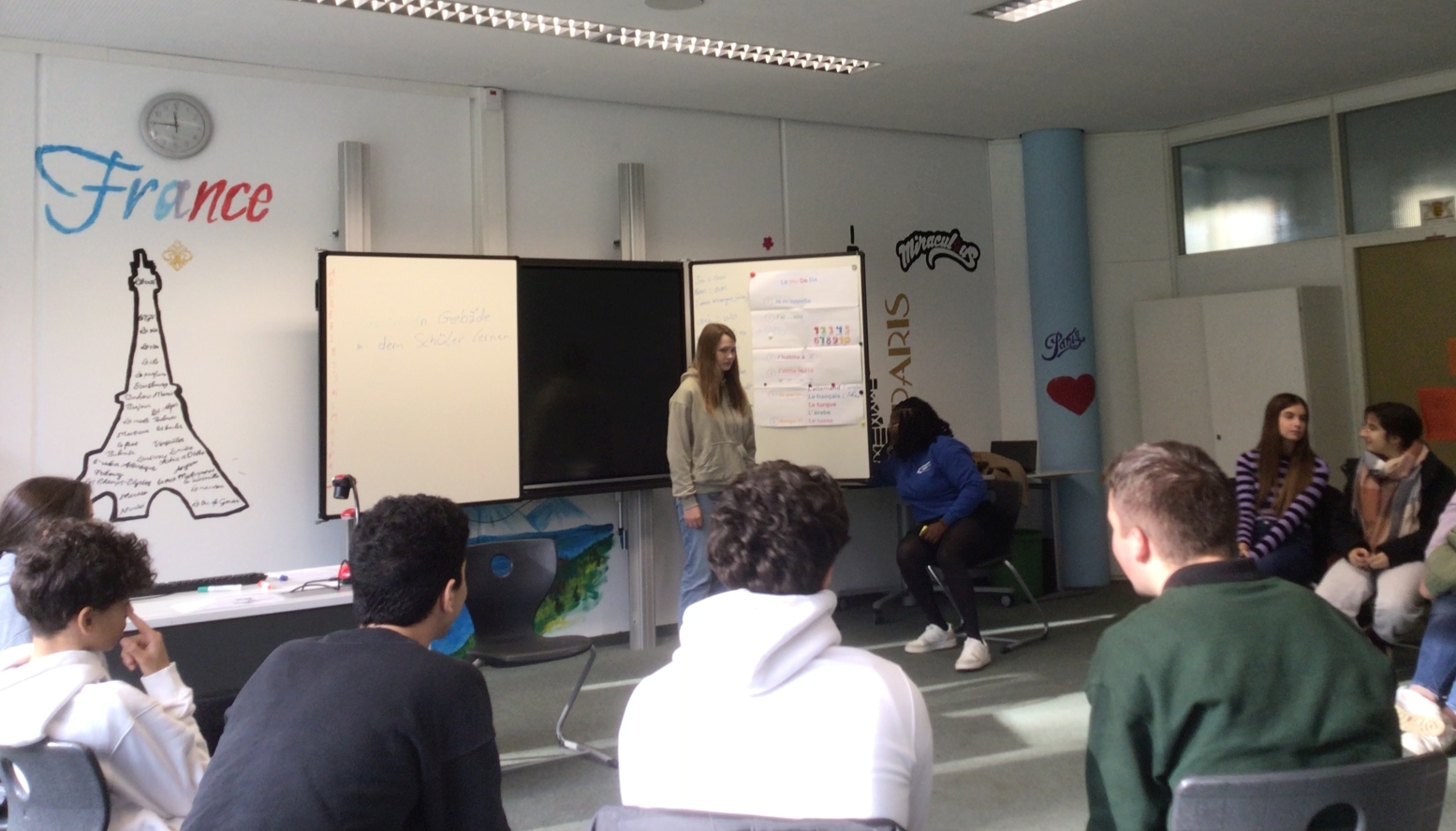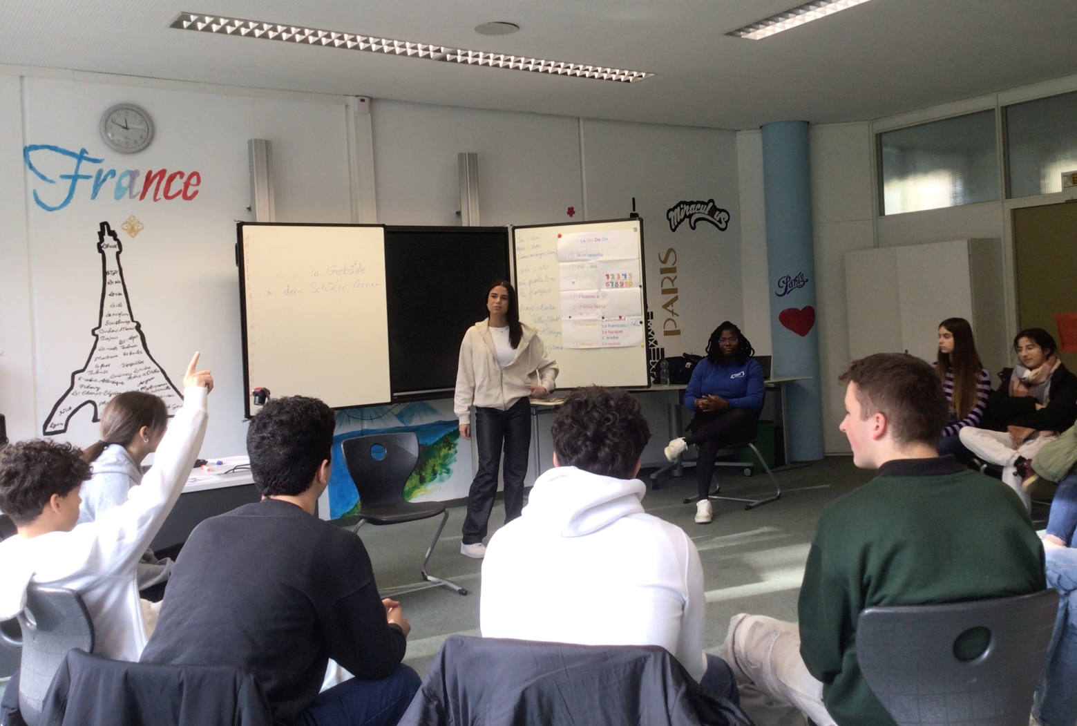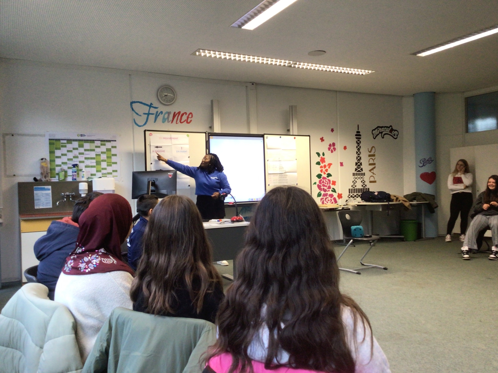 Am Dienstag, den 26. November 2024 haben die Französischschüler der Karl-Kessler-Schule in Aalen-Wasseralfingen Besuch von FranceMobil bekommen. Hermence Béhanzin, die Lektorin von FranceMobil, hat mit ihrer lockeren, aber verbindlichen Art geschafft, die Schüler für die Schönheit der französischen Sprache zu begeistern und mit den Schülern einige Wortfelder zu erarbeiten. Die jüngeren Schüler haben gelernt, sich auf Französisch vorzustellen, sie wissen jetzt wie man die Richtungen auf Französisch sagt und sich in Frankreich begrüßt und verabschiedet. Kleine Tanzpausen zu moderner französischer Musik zwischendurch waren das Highlight. Voller Begeisterung über das gemeinsame Hobby Fußball, das die Schüler mit Hermence teilen, haben sie mit der Lektorin ihre Kontakte ausgetauscht. Die älteren Schüler haben mit Hilfe von Kärtchen Vokabeln erklärt, mit der Referentin, die ursprünglich aus einer königlichen Familie aus Benin, einer ehemaligen französischen Kolonie herkommt, über den afrikanischen Kontinent diskutiert und darüber wie viel oder wie wenig Wasser Menschen auf dem afrikanischen Kontinent heute zur Verfügung haben. Zum Schluss hat Hermence ihre Heimat mit dem Palast ihrer Familie und ihrem Bauernhof den Schülern vorgestellt, was die Schüler sehr beeindruckt hat. Wir wissen den Besuch von Hermence Béhanzin sehr zu schätzen und wünschen ihr für ihre Zukunft alles Gute.