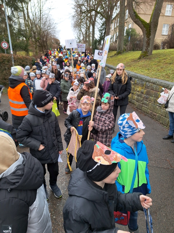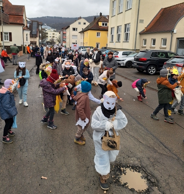 Den Auftakt bildete die Teilnahme der „KKS – tierisch gut drauf“ am 2. Wasseralfinger Kinderfaschingsumzug. Jede Klasse stellte dabei ihr Klassentier dar, das sie seit der ersten Klasse begleitet. So marschierten Lamas, Löwen, Eisbären, Hunde, Pandas, Wölfe und Koalas fröhlich durch die Straßen. Besonders lebendig wurde es, als die kleinen „Raubtiere“ von den Zuschauern mit einem süßen Regen aus Bonbons und anderen Leckereien verwöhnt wurden. Stolz trugen die Kinder ihre prall gefüllten Taschen und genossen die ausgelassene Stimmung des Umzugs. Auch die Besucher am Wegesrand hatten ihre Freude an den gut gelaunten kleinen Narren und ihren strahlenden Gesichtern.
