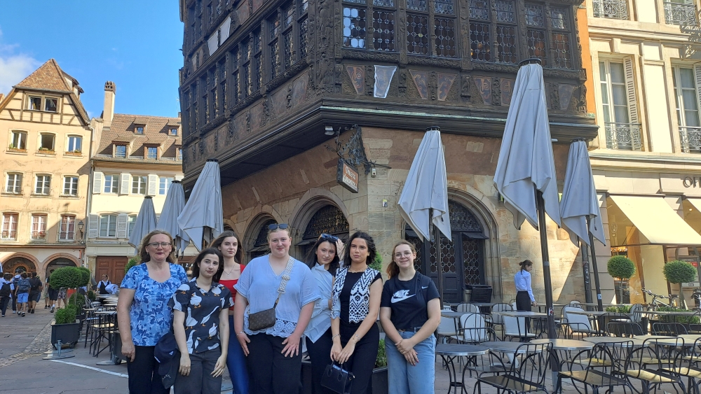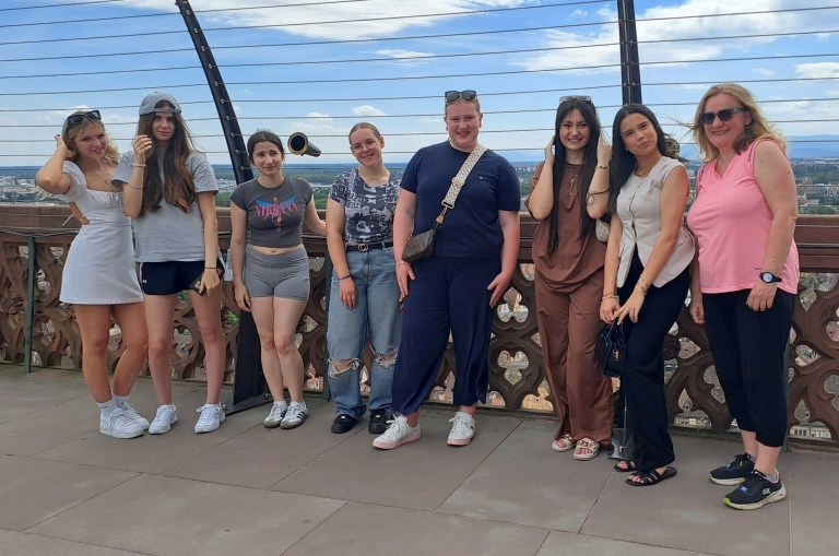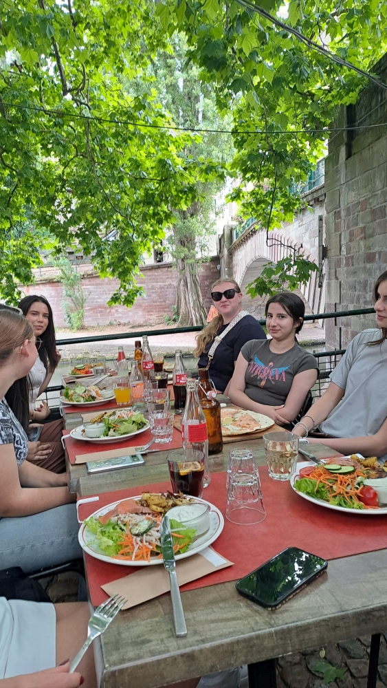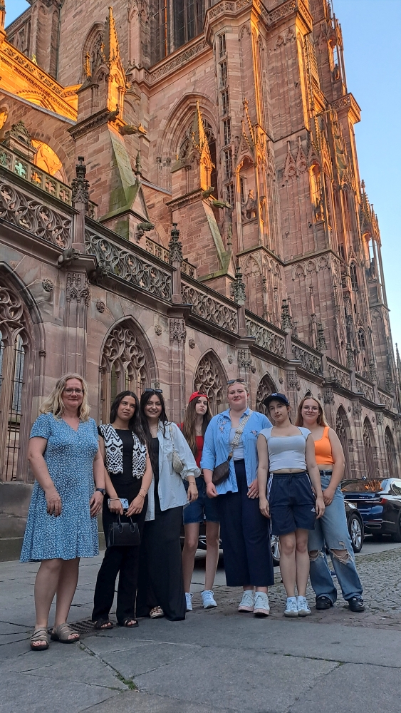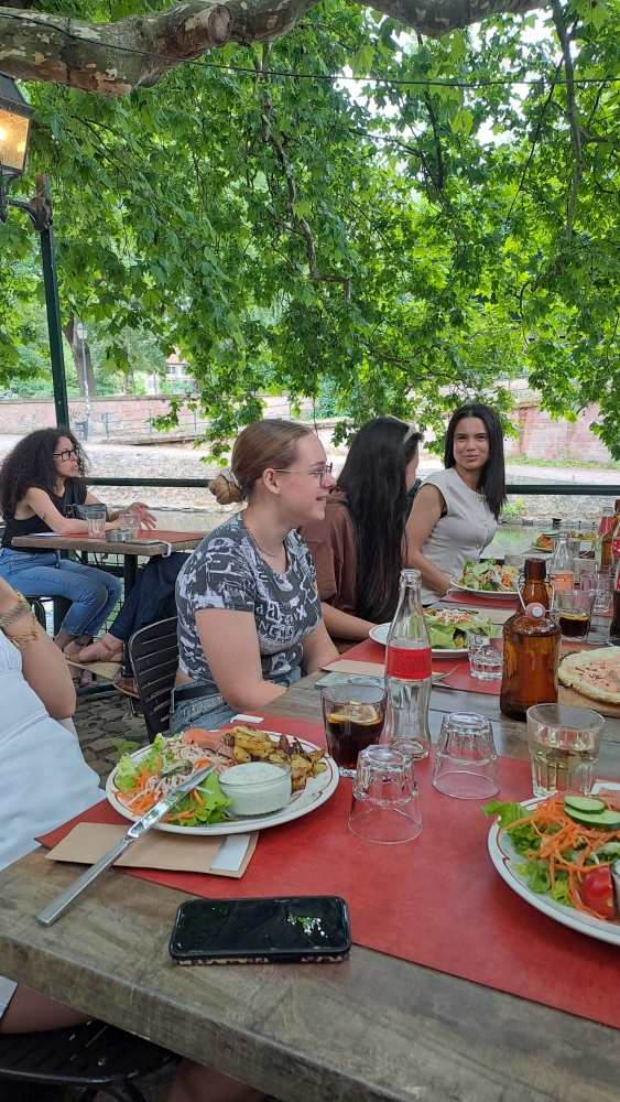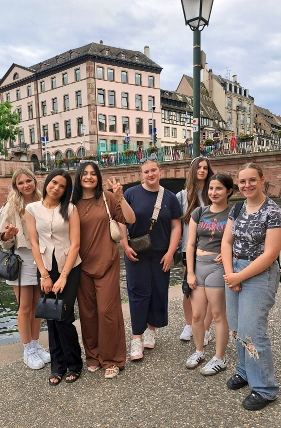 Wir, die Französischschüler der Klasse 9 von der Karl-Kessler Schule in Aalen trafen uns am Montagmorgen um 7:45 Uhr am Aalener Bahnhof, um mit dem Zug nach Straßburg zu fahren. Wir hatten zwei Umstiege in Karlsruhe und in Appenweier. Als wir um 13:04 Uhr in Straßburg am Hauptbahnhof ankamen, liefen wir mit unseren großen Koffern direkt in das Hotel Kléber. Nach dem Check-in und einer kleinen Ruhepause, gingen wir zur Kathedrale. Wir liefen die Treppen zur Aussichtsplattform hoch, um die Aussicht auf Straßburg und die Umgebung zu bewundern und machten anschließend eine Bootsfahrt auf der Ill um die Stadt herum. Am Abend spazierten wir durch das malerische Stadtviertel La Petite France, um unter einem grünen Baum an der Ill im Restaurant „Au petit bois vert“ eine französische Spezialität zu uns zu nehmen. Nach einem leckeren französischen Frühstück am Dienstagmorgen durften wir uns das Straßburger Münster von Innen anschauen. Mittags schauten wir uns in Gruppen in der Stadt um, um Souvenirs zu kaufen und verbrachten zwei Stunden im Einkaufszentrum Les Halles. Am Nachmittag fuhren wir mit der Tram in das Schokoladenmuseum Secrets du chocolat par Schaal nach Geispolsheim. Zuerst gab es eine Verköstigung mit Schokoladenkuchen, Pralinen, Bonbons, Eis und Schokolade und dann bekamen wir Informationen wie Schokolade von der Kakaobohne bis zum fertigen Produkt hergestellt wird. Am Abend aßen wir verschiedene Flammkuchensorten bei Flam`s. Am nächsten Morgen nach einem kleinen Einkauf bei Monoprix machten wir uns auf den Rückweg nach Deutschland.