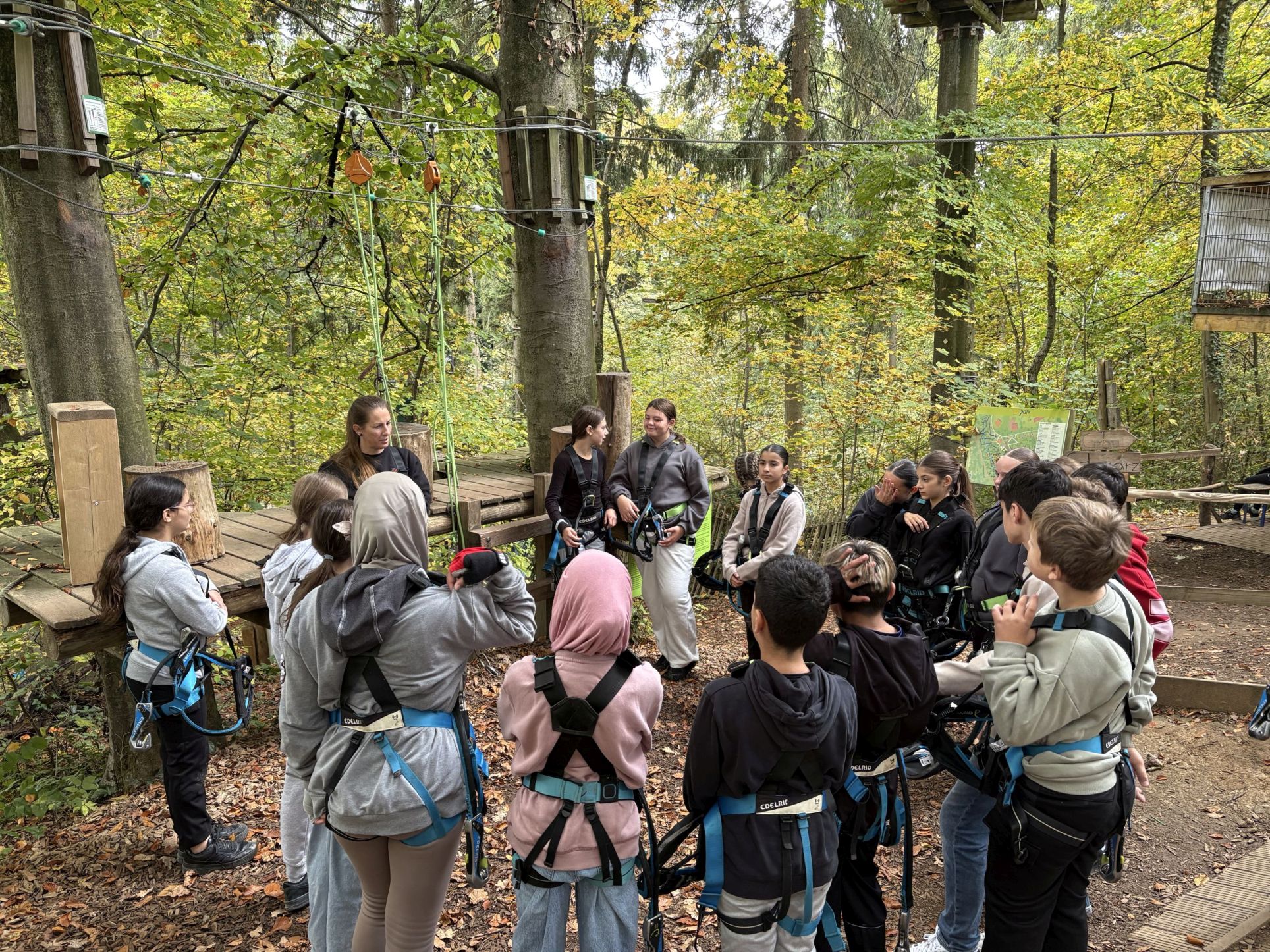 Nach einer gemeinsamen Mittagspause ging es dann in den Klettergarten, wo jede und jeder persönliche Herausforderungen meisterte. Mut, gegenseitige Ermutigung und Zusammenhalt spielten hier eine große Rolle.