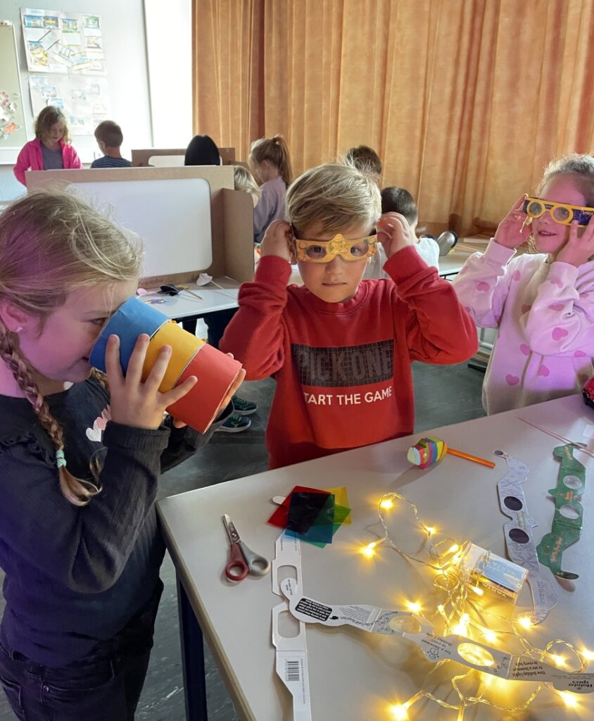In der vergangenen Woche besuchte das Explorhino unsere Erstklässler und brachte spannende Experimente rund um das Thema „Licht und Schatten“ mit. Die Kinder durften selbst ausprobieren, wie Schatten entstehen, wie sich der Schatten verändert und wie man sogar farbige Schatten erzeugen kann. Mit großer Begeisterung wurde geforscht, ausprobiert und gestaunt.
