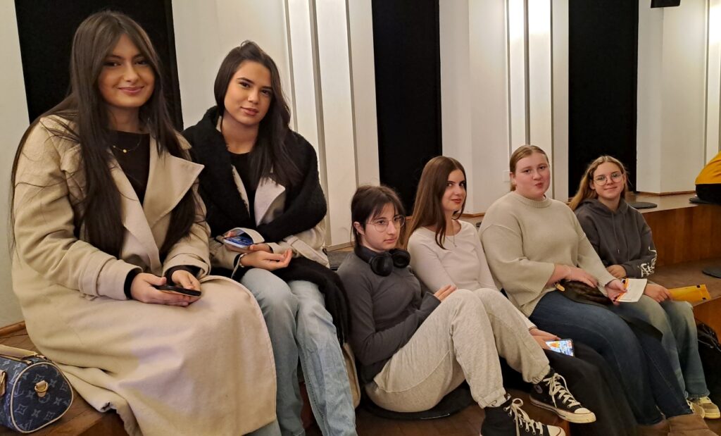 Nachdem das Theaterstück zu Ende war, kamen die Schauspieler noch einmal auf die Bühne, um die Fragen der Zuschauer zu beantworten. Es hat sich gezeigt, dass sich die Schauspieler erst seit zwei Monaten kennen, um an dem Projekt zu arbeiten und gerade auf Tournee in 13 verschiedenen europäischen Länder sind. Wir waren begeistert zu erfahren, dass sie innerhalb eines Monats so ein wunderbares Stück einüben konnten und sie erzählten uns, dass das Anspruchsvolle das Wechseln der Rollen ist, da jeder von ihnen mehrere Rollen übernommen hat.