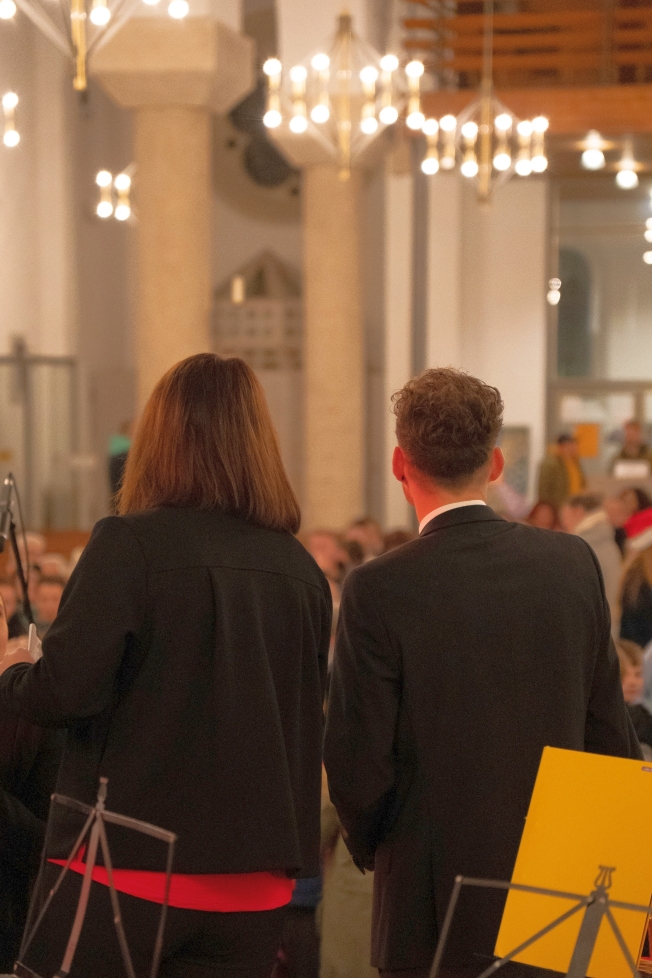 Das Konzert eröffnete die Musikfachschaft mit einer instrumentalen Version von „You raise me up“. Zeitgleich zog der Lehrerchor in die mittlerweile dunkle Kirche ein und sorgte mit einem vierstimmigen Satz von „You raise me up“ für eine festliche Stimmung.