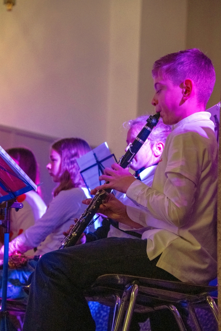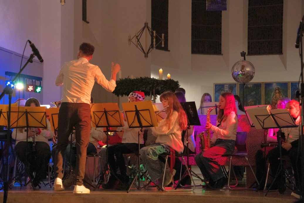 sich die Gäste über eine tolle Darbietung der Bläserklasse 9 (ebenfalls unter der Leitung von Christina Babel) erfreuen. Das jahrelange Üben zahlte sich aus und so bekamen sie für die Stücke „Easy Pop Suite“ und „Last Christmas“ reichlich Applaus.