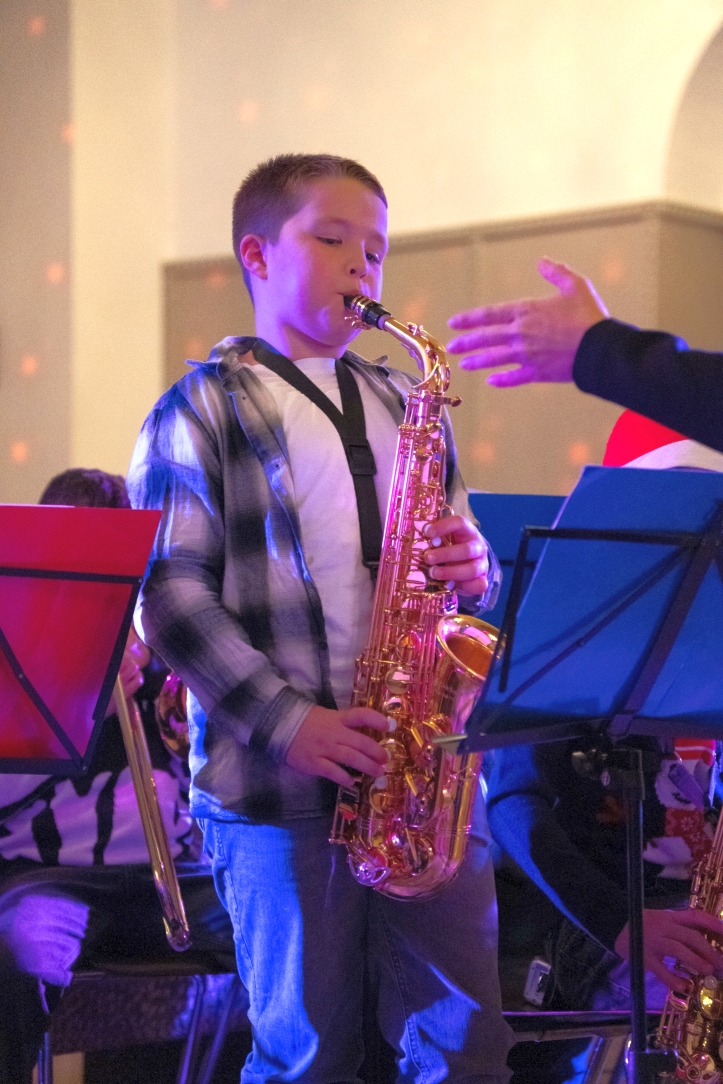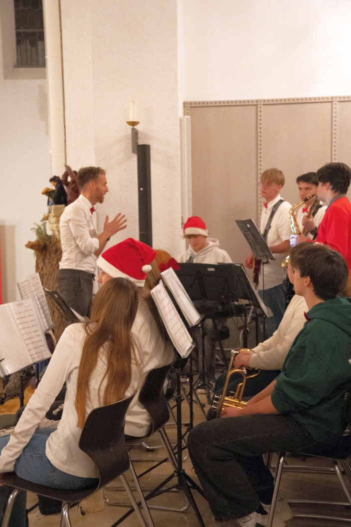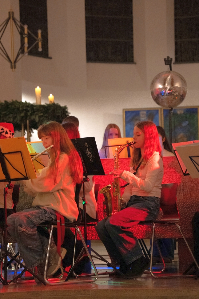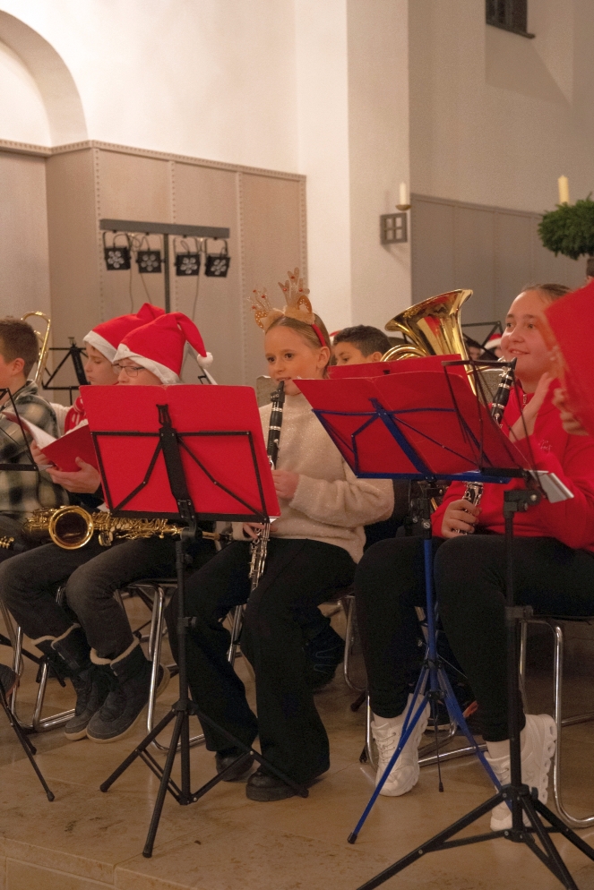 Beeindruckend war der Auftritt der Bläserklasse 5 unter der Leitung von Christina Babel. Nach nur wenigen Wochen überzeugten sie mit den drei Weihnachtsklassikern „Jingle Bells“, „Morgen kommt der Weihnachtsmann“ und „Ihr Kinderlein kommet“. Anschließend durften