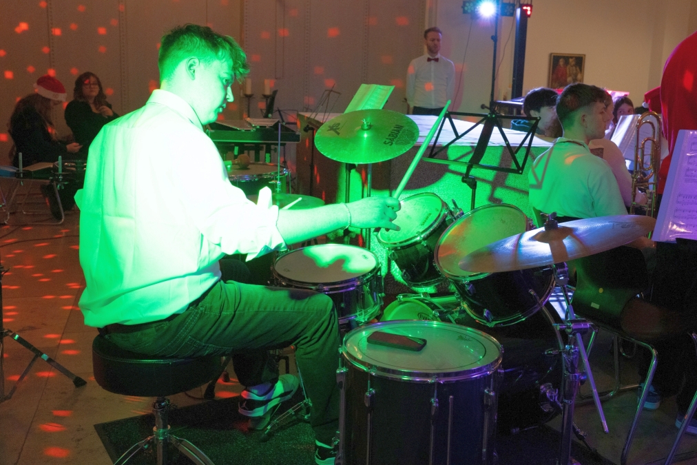 Als vorletzter Programmpunkt trat das Schulorchester unter Leitung von Benedikt Sachsenmaier auf. Mit „Nothing Else Matters“ und „Santa Claus ist coming to town“ sorgten sie für Gänsehautmomente. Julia Vogel und Chiara Büch überzeugten dabei mit tollen Stimmen.