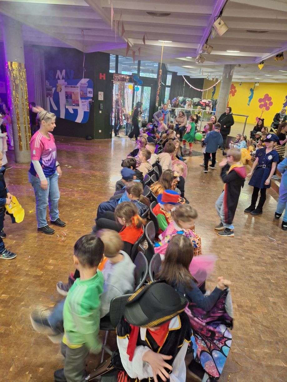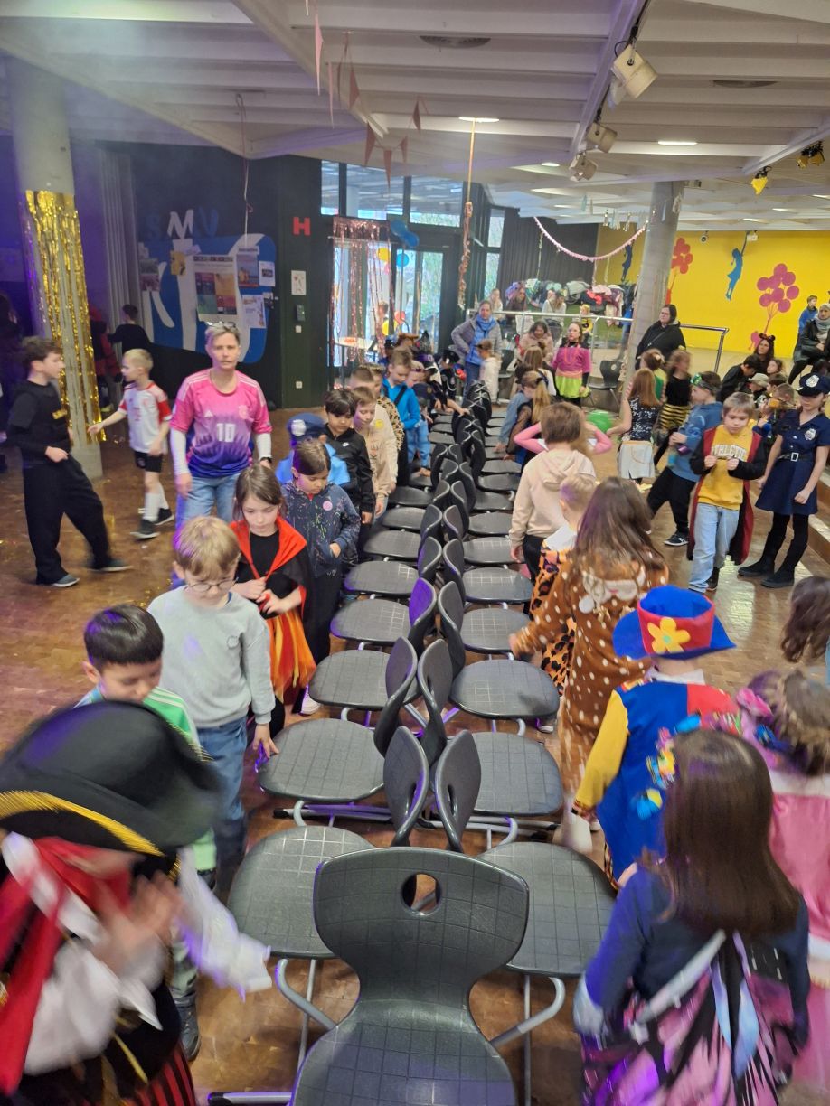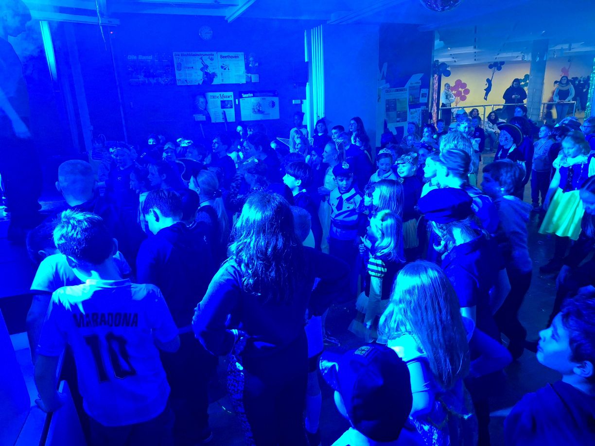 Am Nachmittag ging das bunte Treiben weiter: Die SMV, unterstützt von Herrn Kohler, lud die Grundschulkinder zur traditionellen Faschingsdisco ein. Bei Klassikern wie der „Reise nach Jerusalem“ und dem „Stopptanz“ war Spaß garantiert. Die Kids tanzten ausgelassen zur Musik, die dank der professionellen Anlage der Tontechnik-AG mit Diskobeleuchtung und Nebel für die perfekte Partyatmosphäre sorgte.