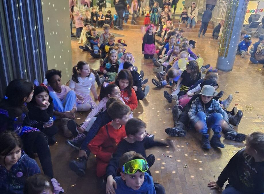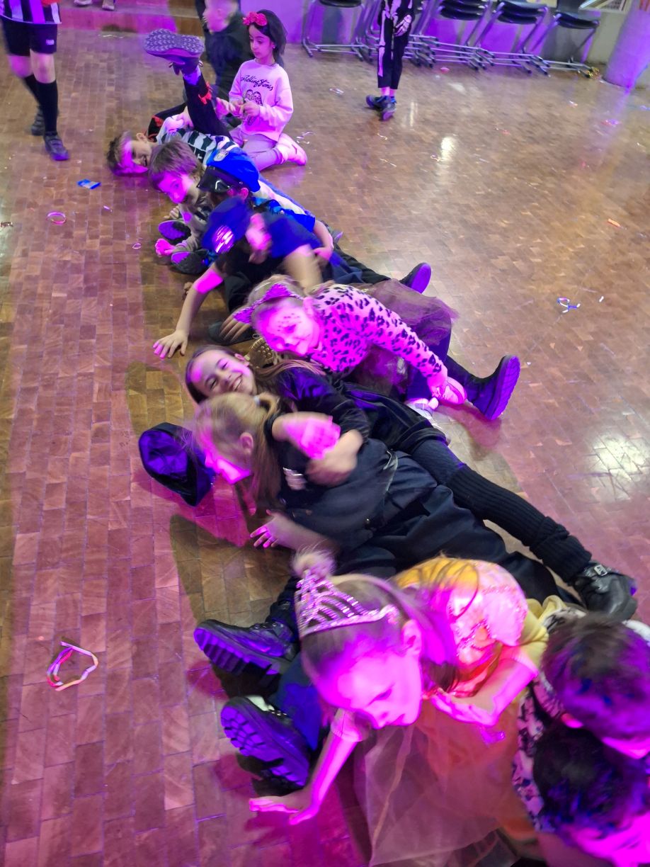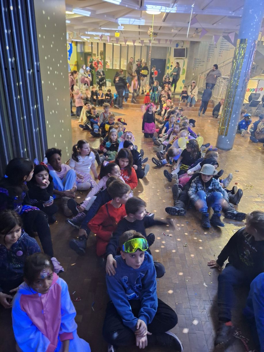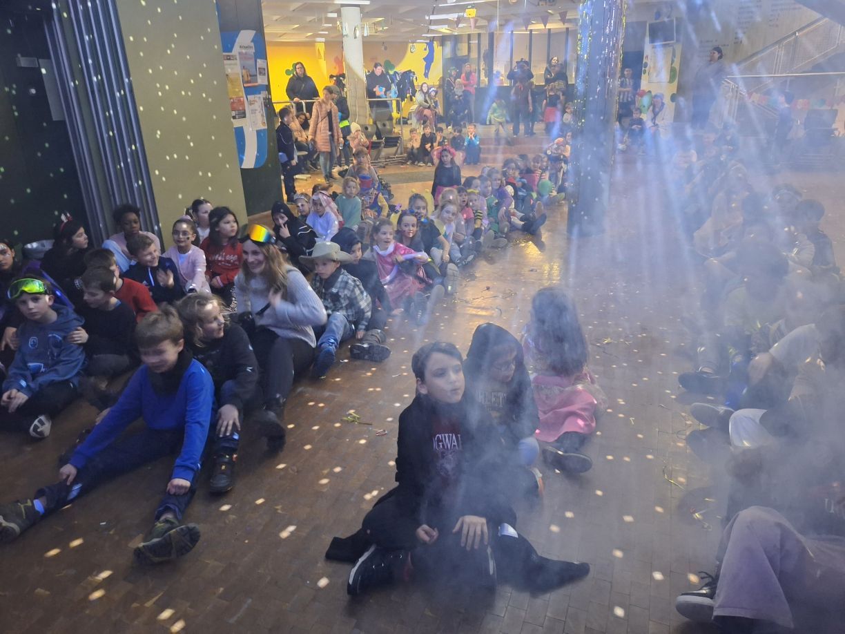 Am Nachmittag ging das bunte Treiben weiter: Die SMV, unterstützt von Herrn Kohler, lud die Grundschulkinder zur traditionellen Faschingsdisco ein. Bei Klassikern wie der „Reise nach Jerusalem“ und dem „Stopptanz“ war Spaß garantiert. Die Kids tanzten ausgelassen zur Musik, die dank der professionellen Anlage der Tontechnik-AG mit Diskobeleuchtung und Nebel für die perfekte Partyatmosphäre sorgte.