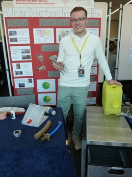 | Der ehemalige KKS-Schüler Noel Mang hat eine Dekonaminationsbox für die Feuerwehr entwickelt. Diese Erfindung wurde mit einem 3. Platz im Bereich Arbeitswelt ausgezeichnet. |